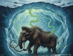 Кроме метана в процессе анаэробного разложения органических веществ (брожения) выделяется тепло. В результате этого процесса вокруг туши мамонта - сгустка растительности или другой органики - лёд тает и образуется вода. Полость оттаивания начинает расширяться (увеличивается в объёме) и заполняется газом метаном. Давление, которое образуется в полости вокруг органических веществ, не останавливает процесс брожения.